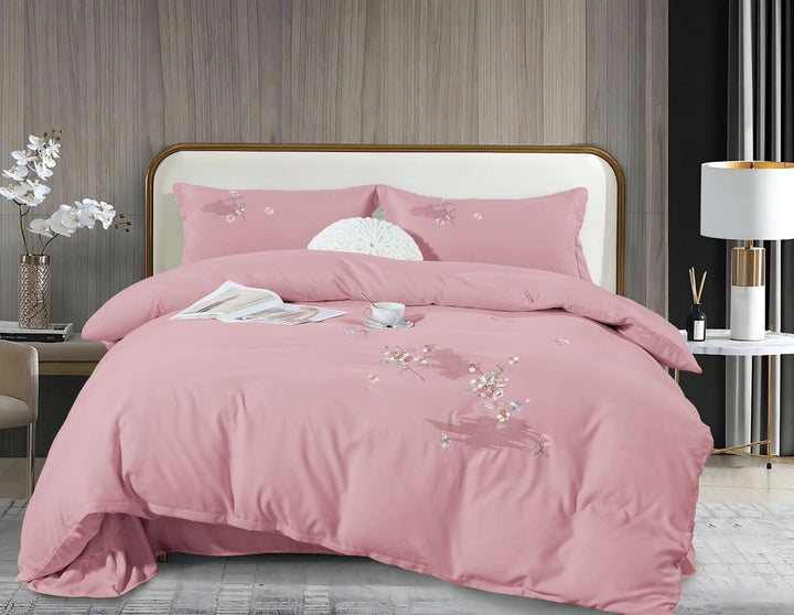 4-teiliges besticktes Bettwäsche-Set aus doppelt gewebter Feinbiber-Baumwolle