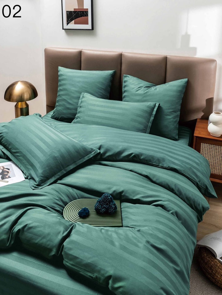 6-teiliges Hotel-Bettwäsche-Set aus fein gewebter Baumwolle, doppelt grün