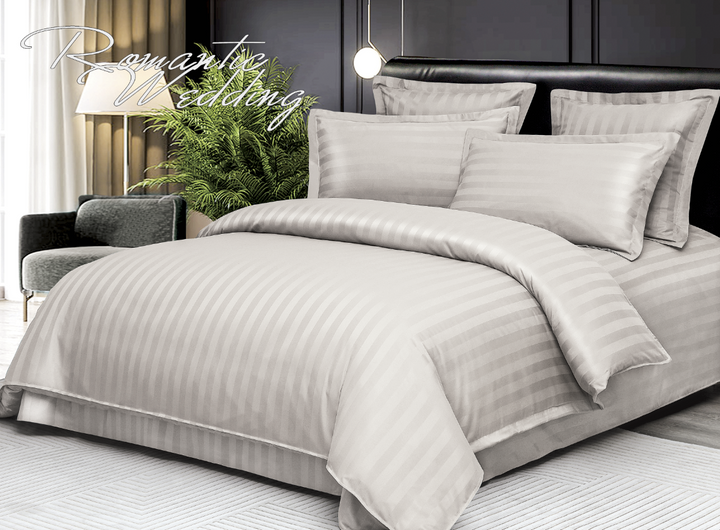 6-teiliges Hotel-Bettwäsche-Set aus fein gewebter Baumwolle, doppelt Creme