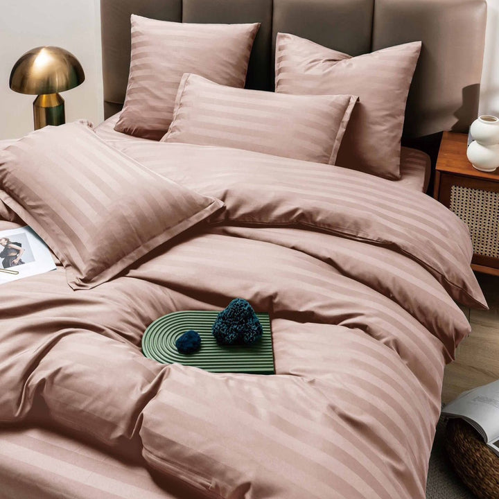 6-teiliges Hotel-Bettwäsche-Set aus fein gewebter Baumwolle, doppelt Altrosa