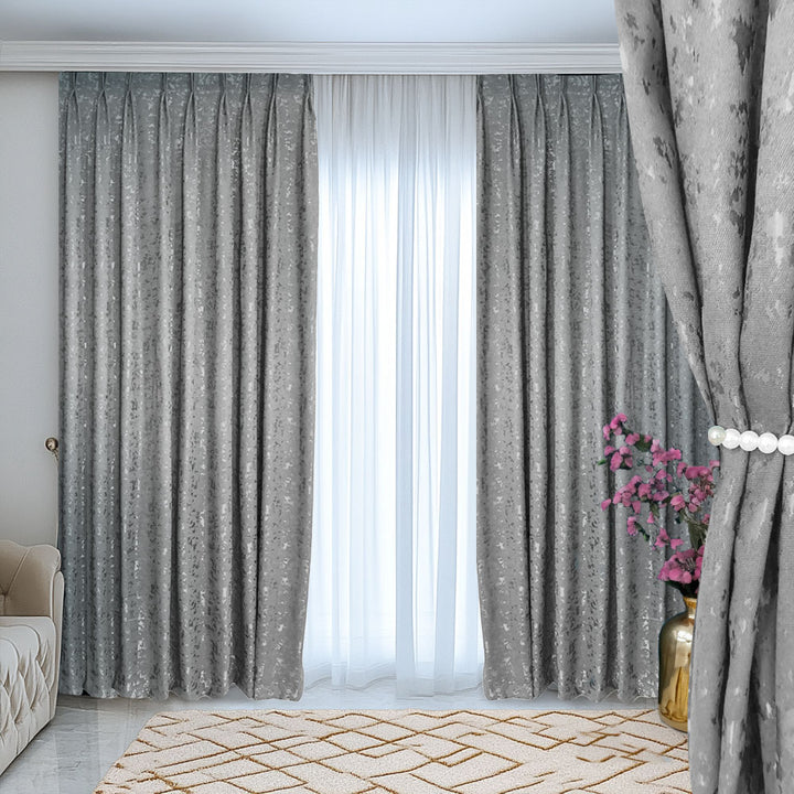 Deko Vorhang mit eleganter Textur Oberfläche Hellgrau – mit Kräuselband (1 Stück)
