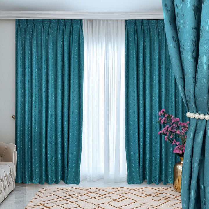Deko Vorhang mit eleganter Textur Oberfläche Türkis – mit Kräuselband (1 Stück)