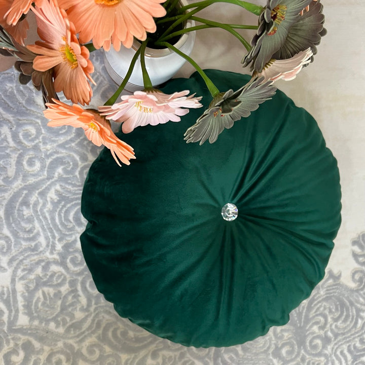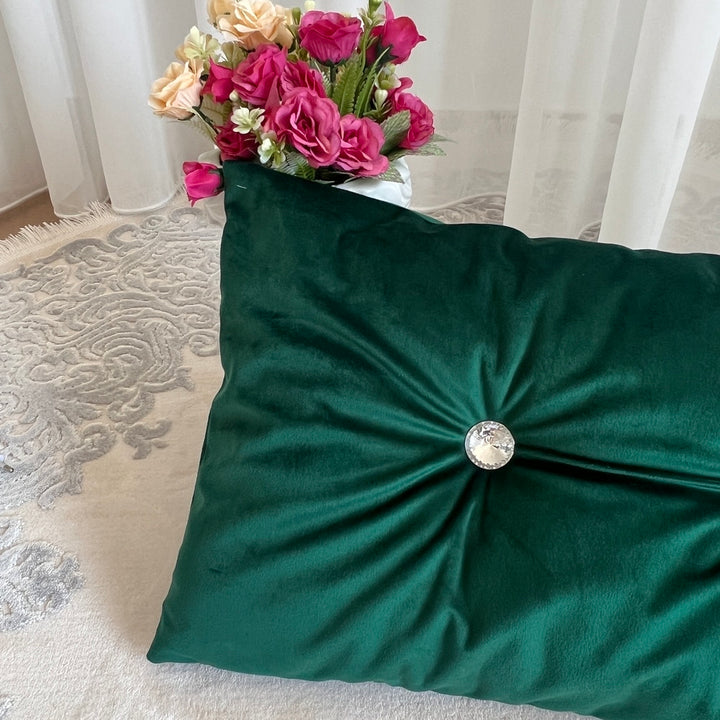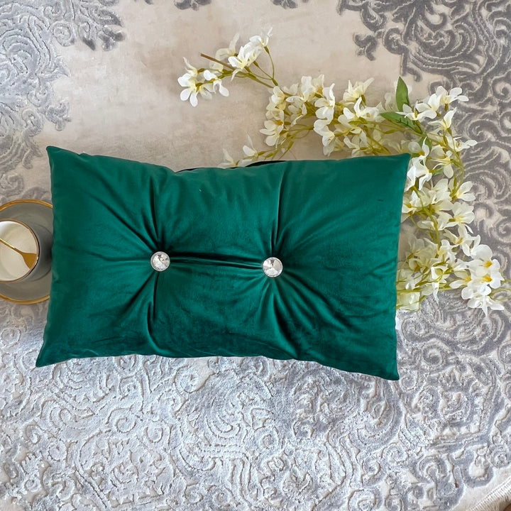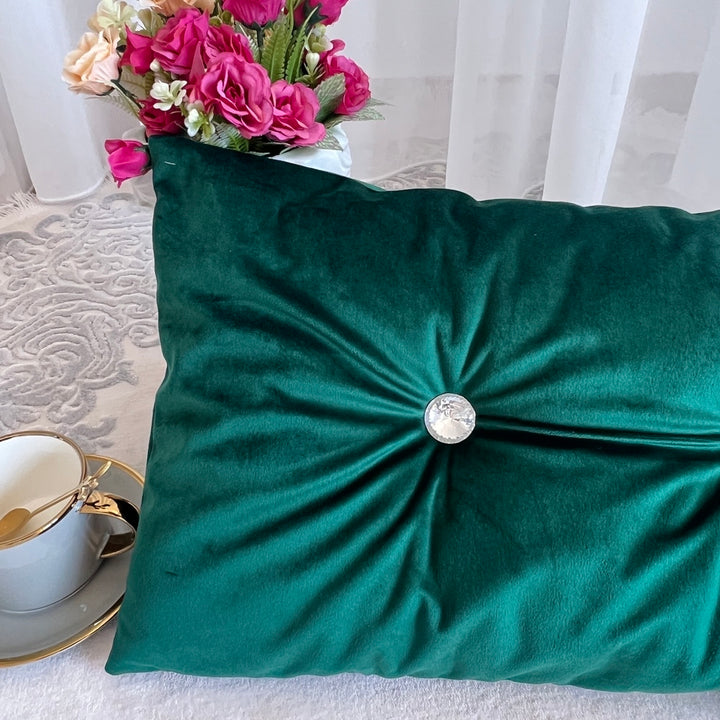 Dekokissen mit Samtbezug, Kristallknöpfen und Silikonfüllung