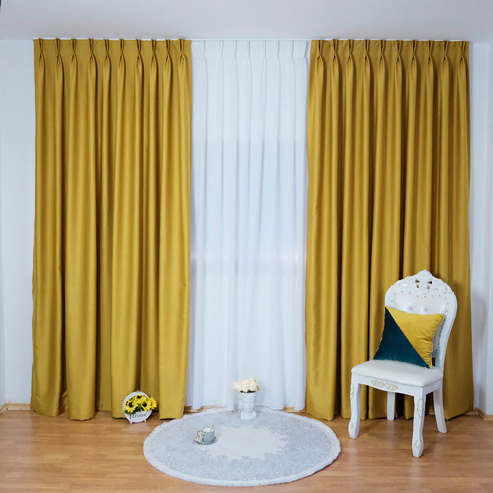 Dicke Stoff Vorhang 90% Verdunkelung Gelb – mit Kräuselband (1 Stück)