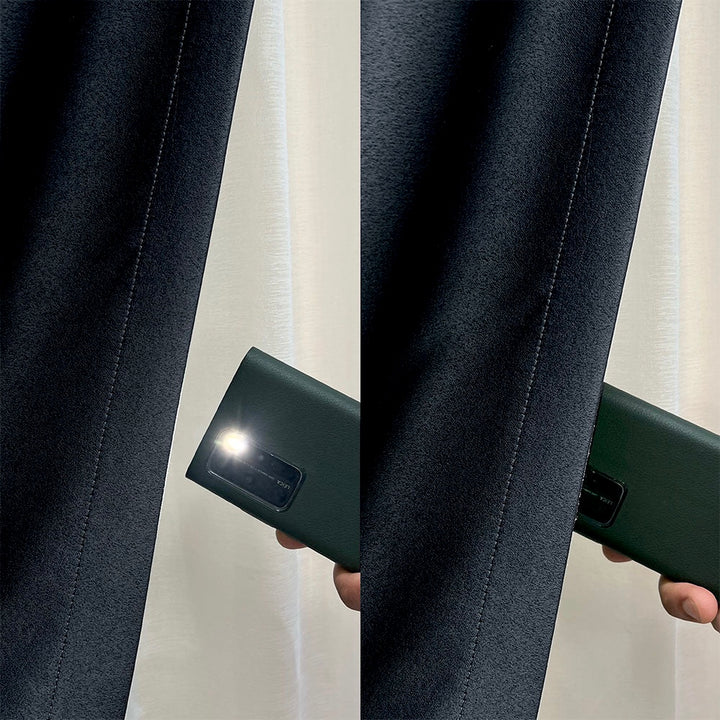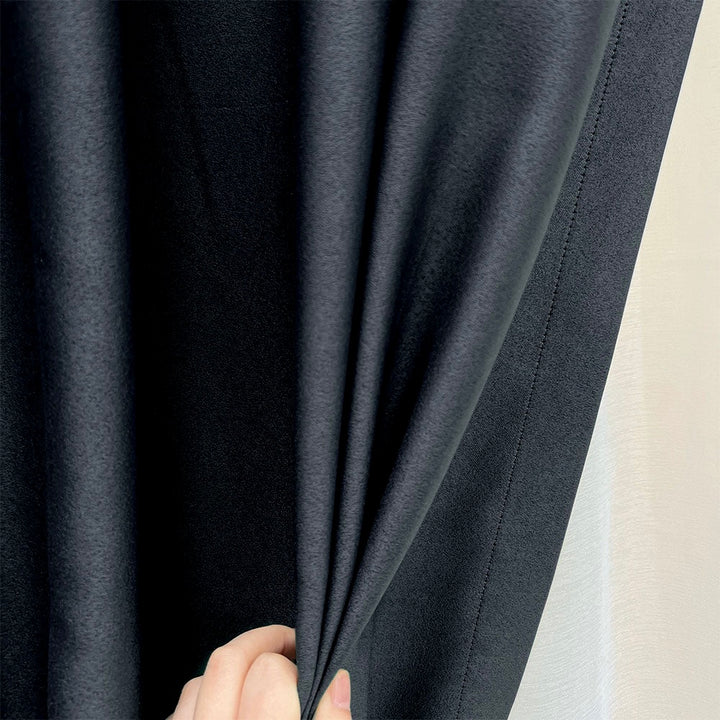Die halbverdunkelnden Samtvorhänge mit fließender Textur sind angenehm weich, knitterfrei, blockieren das Sonnenlicht und bieten eine thermische Isolierung sowohl gegen Kälte im Winter als auch gegen Hitze im Sommer.