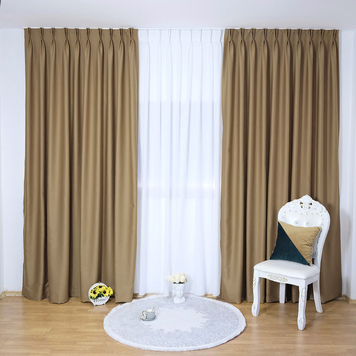 Dicke Stoff Vorhang 99% Verdunkelung Beige – mit Kräuselband (1 Stück)
