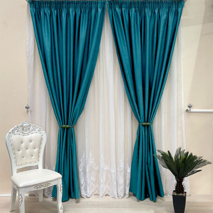 Dicke Stoff Vorhang 99% Verdunkelung Türkis – mit Kräuselband (1 Stück)