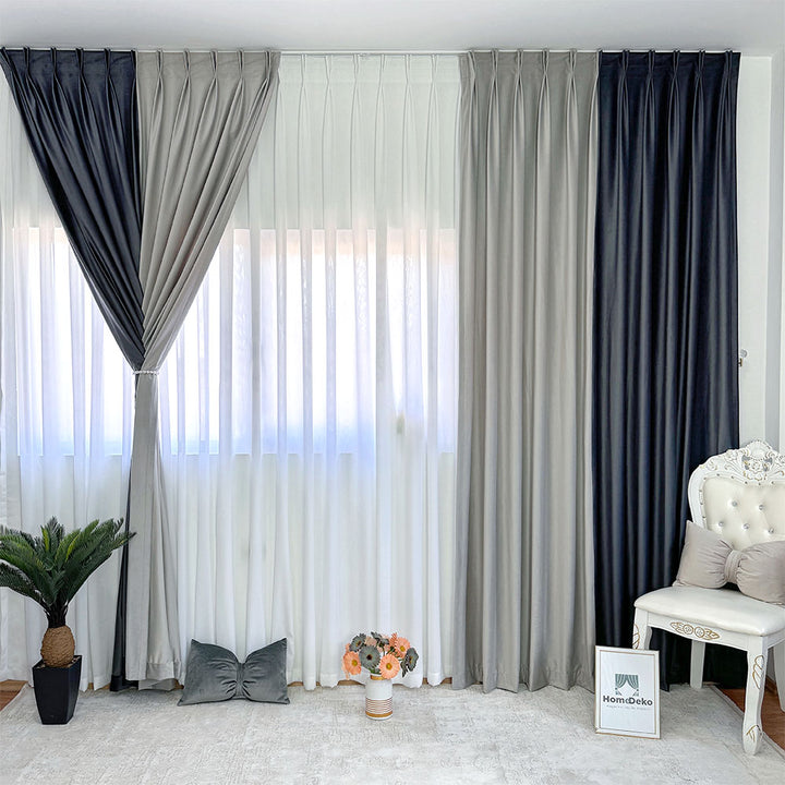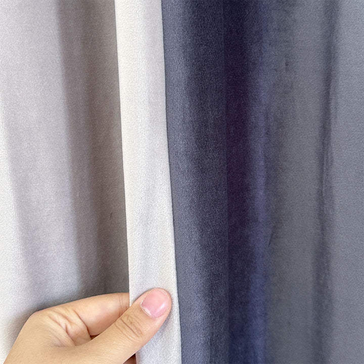Duo-Samtvorhänge mit weicher, fließender Textur sind angenehm anzufassen, bilden keine Falten, blockieren bis zu 80 % des Sonnenlichts und bieten thermische Isolierung – sowohl gegen Kälte im Winter als auch gegen Hitze im Sommer.