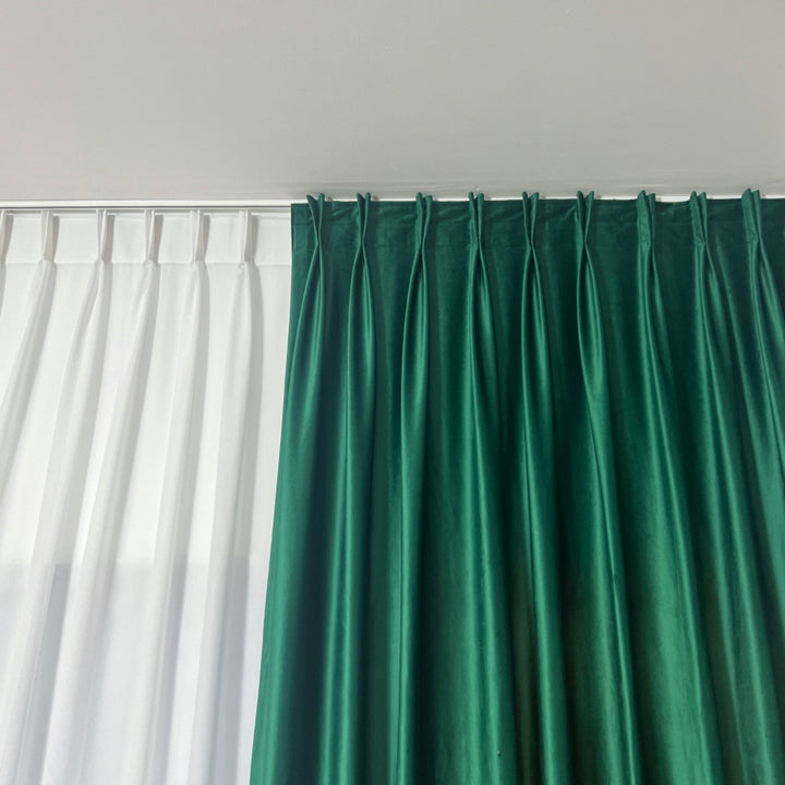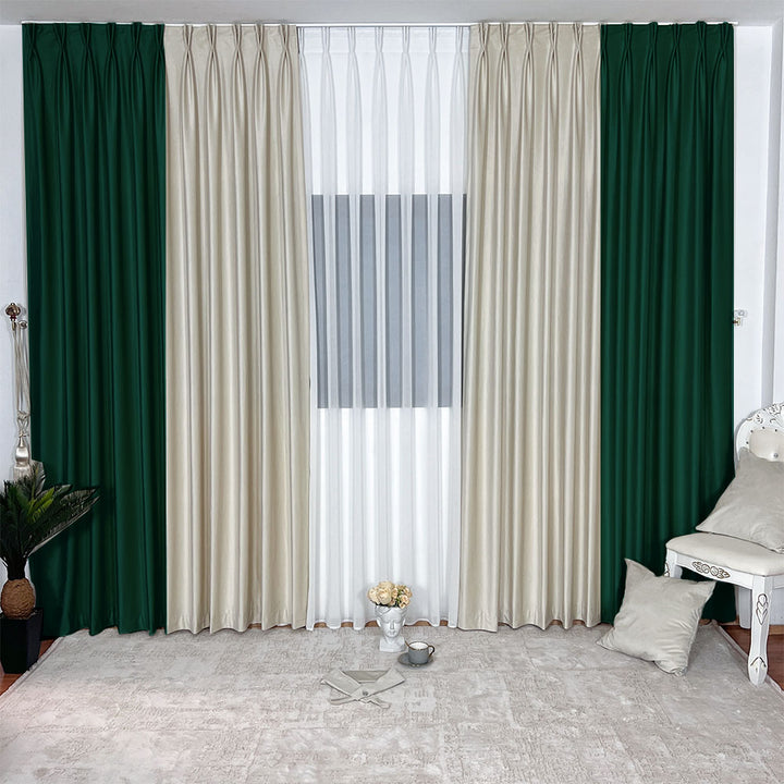 Duo-Samtvorhang – 80 % Lichtschutz, Grün-Elfenbein – mit Kräuselband (1 Stück)