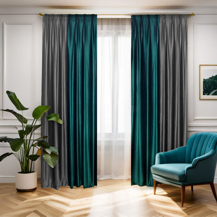 Duo-Samtvorhang – 80 % Lichtschutz, Türkis-Grau– mit Kräuselband (1 Stück)