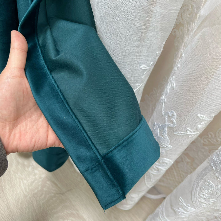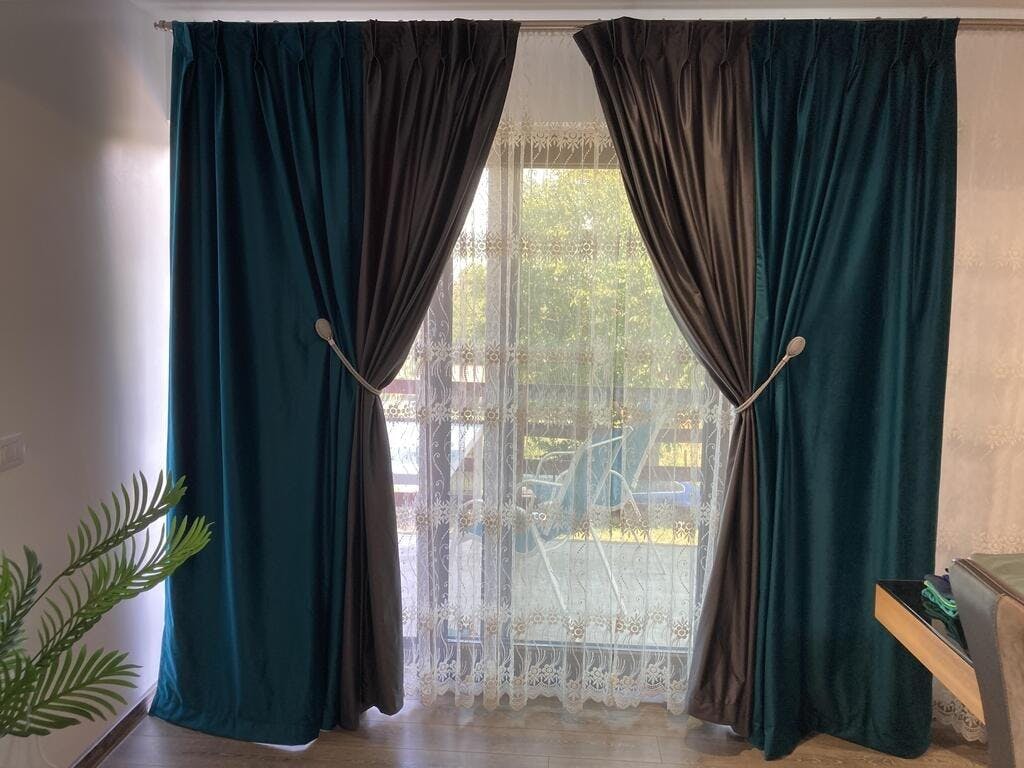 Duo-Samtvorhänge mit weicher, fließender Textur sind angenehm anzufassen, bilden keine Falten, blockieren bis zu 80 % des Sonnenlichts und bieten thermische Isolierung – sowohl gegen Kälte im Winter als auch gegen Hitze im Sommer.