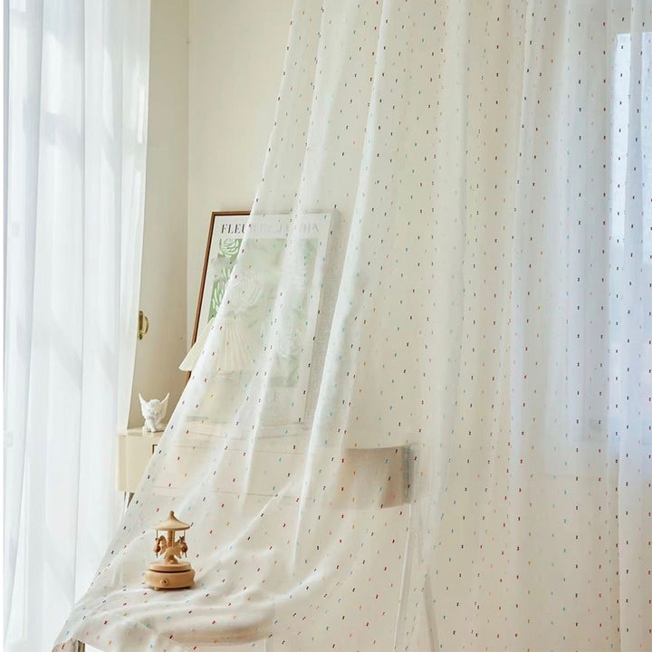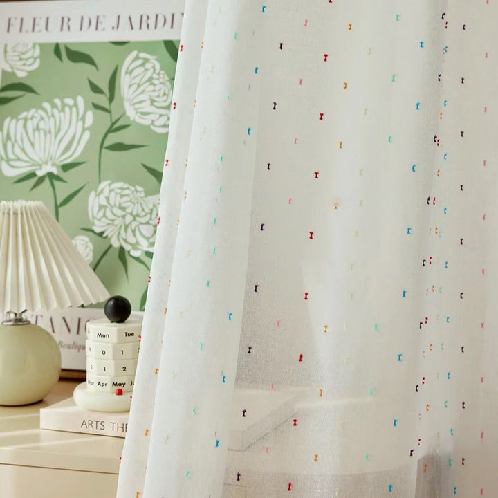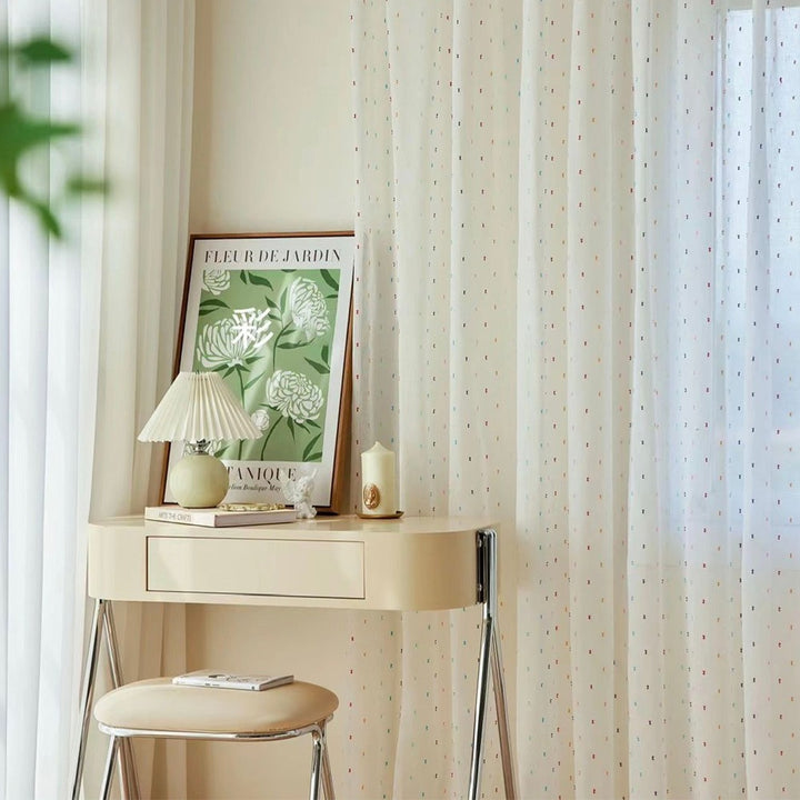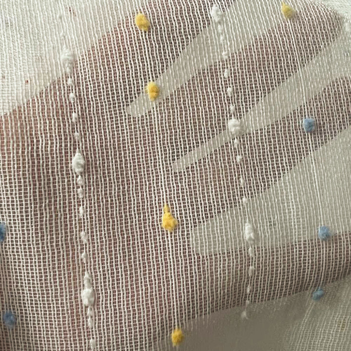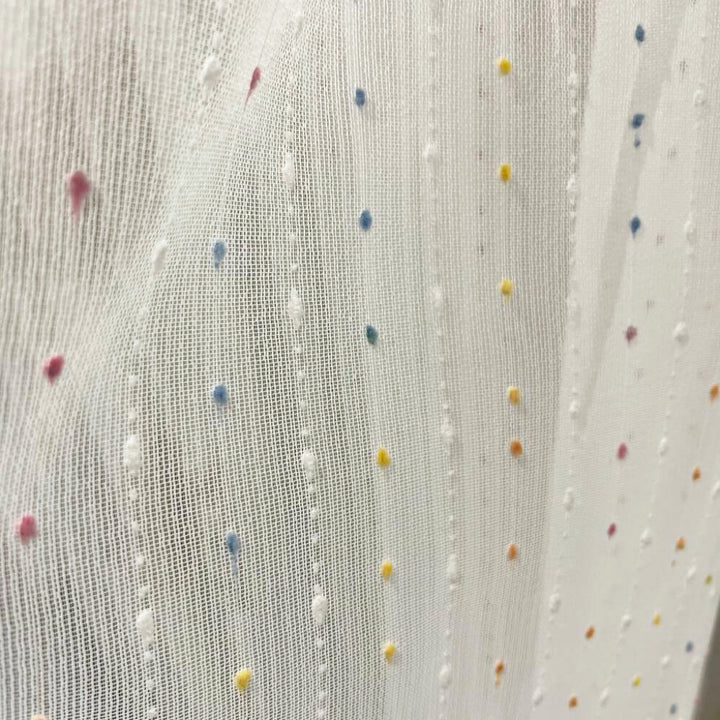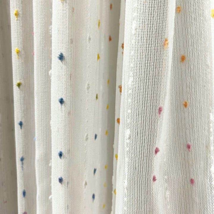 Durchsichtiger Boho-Vorhang mit bunten Bommeln Elfenbein – mit Kräuselband (1 Stück)