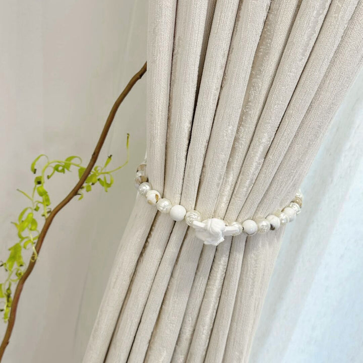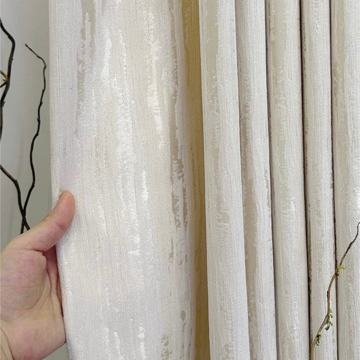 Moderner Vorhang Pearl Chenille 80% Verdunkelung Elfenbein – mit Kräuselband (1 Stück)