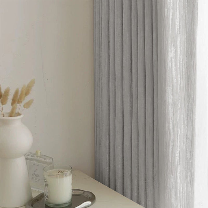 Moderner Vorhang Pearl Chenille 80% Verdunkelung Hellgrau – mit Kräuselband (1 Stück)