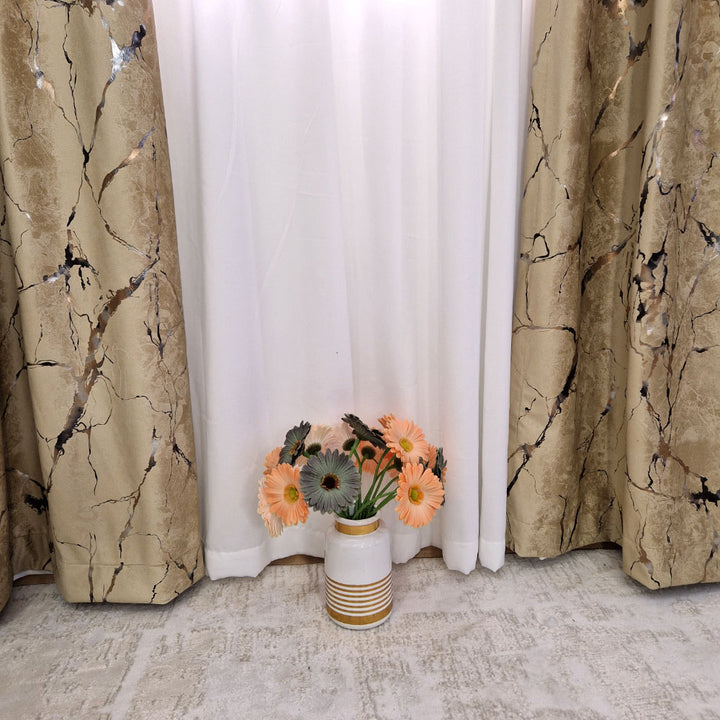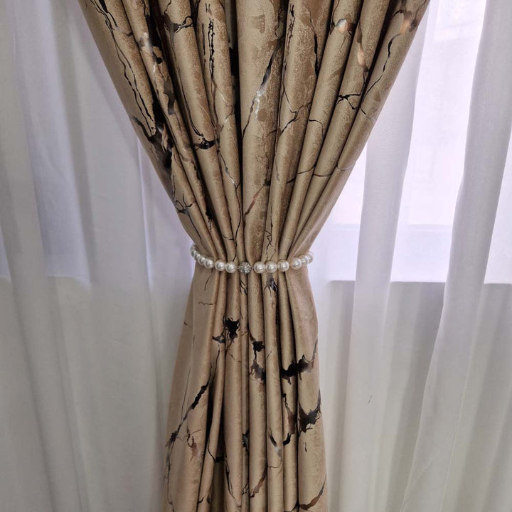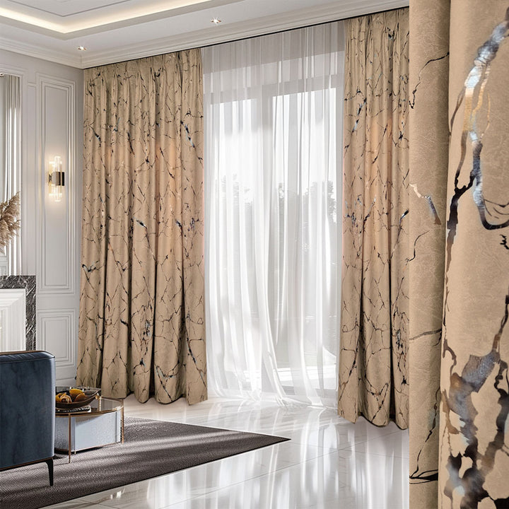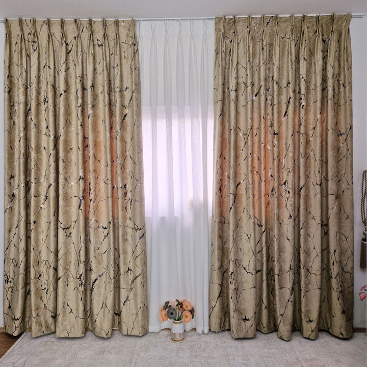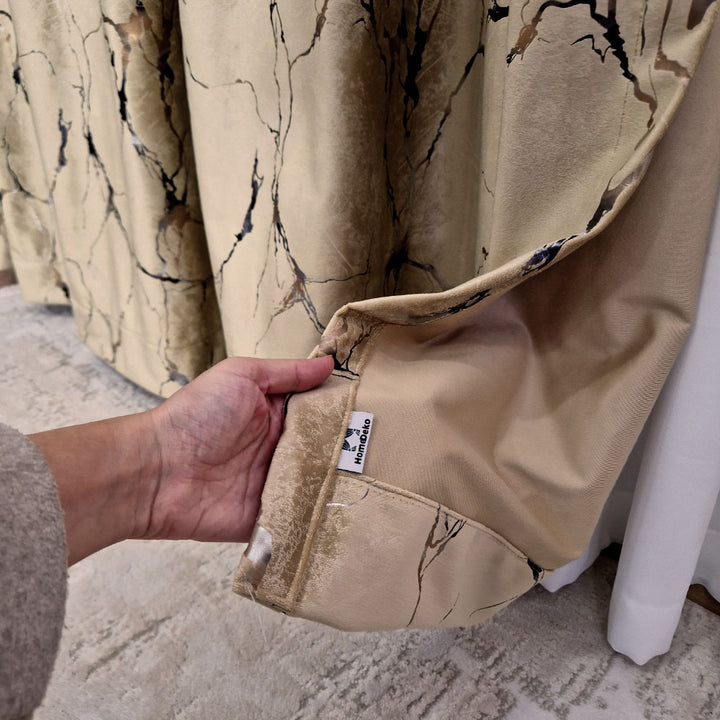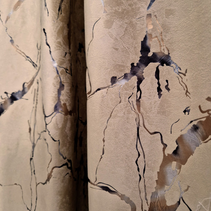Folien gedruckter Samt 80% Verdunkelung Hellbeige – mit Kräuselband (1 Stück)