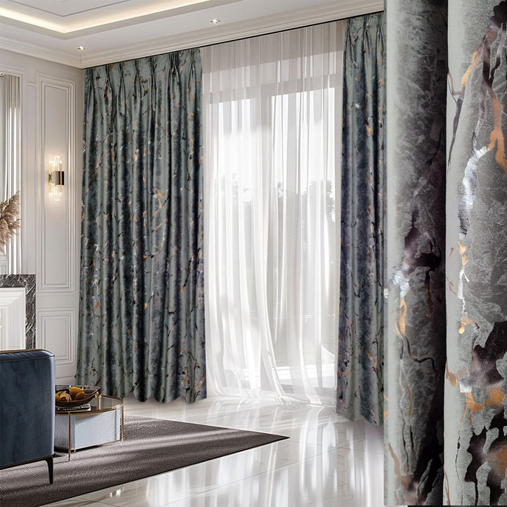 Die halbverdunkelnden Samtvorhänge mit fließender Textur sind angenehm weich, knitterfrei, blockieren das Sonnenlicht und bieten eine thermische Isolierung sowohl gegen Kälte im Winter als auch gegen Hitze im Sommer.