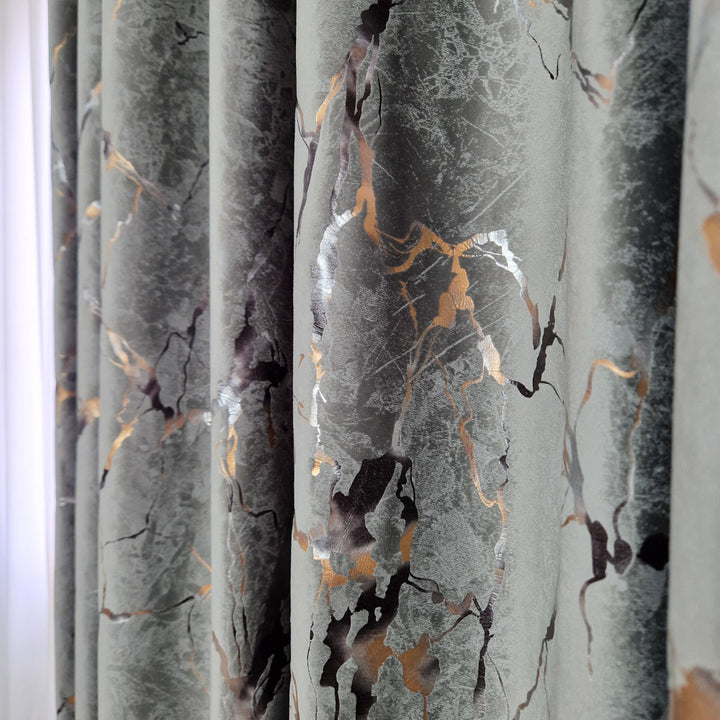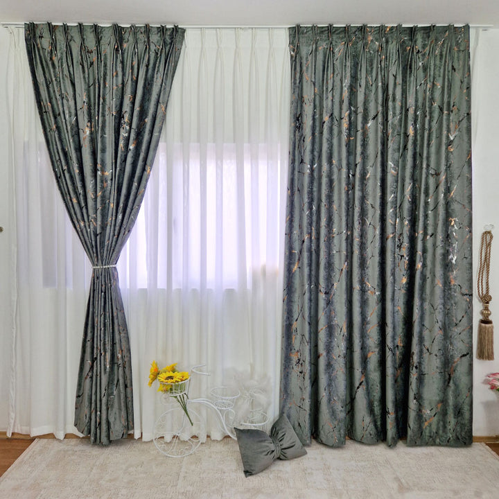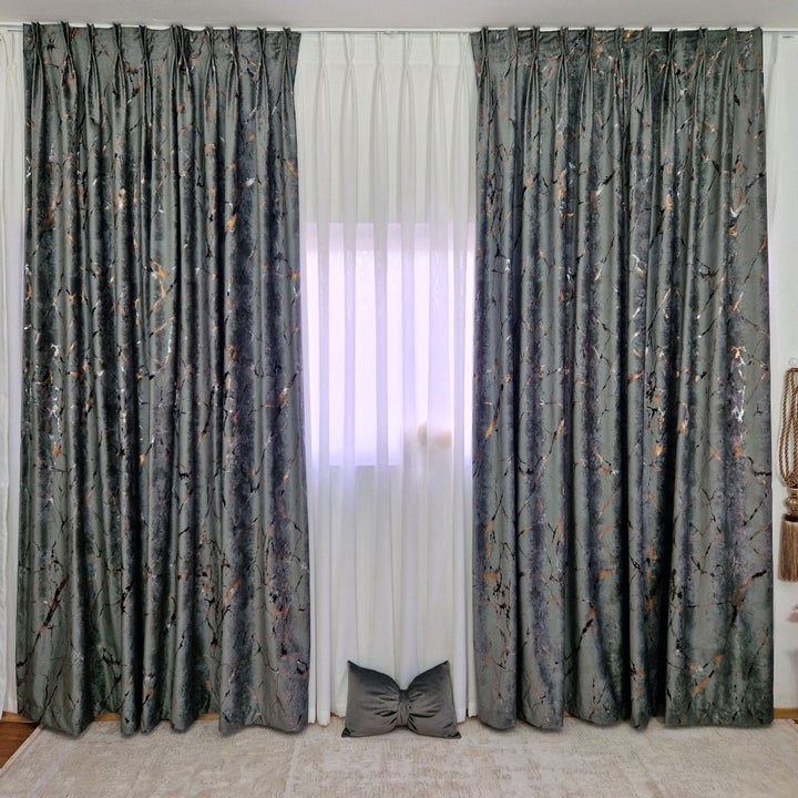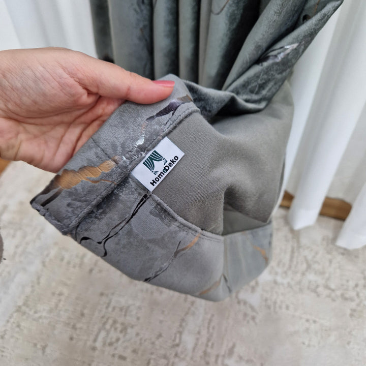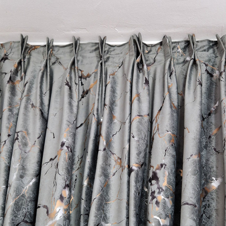 Folien gedruckter Samt 80% Verdunkelung Mittelgrau – mit Kräuselband (1 Stück)