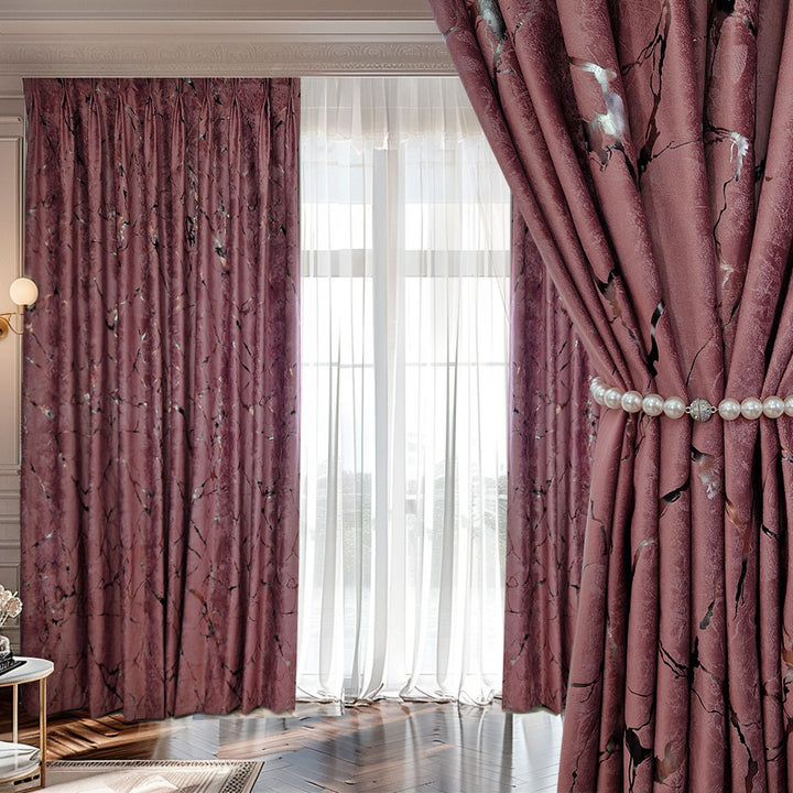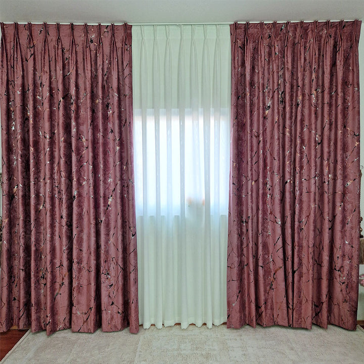 Folien gedruckter Samt 80% Verdunkelung Rose – mit Kräuselband (1 Stück)