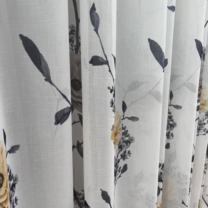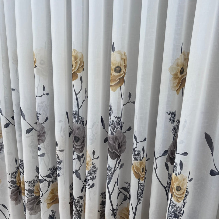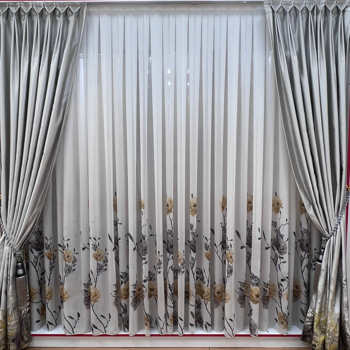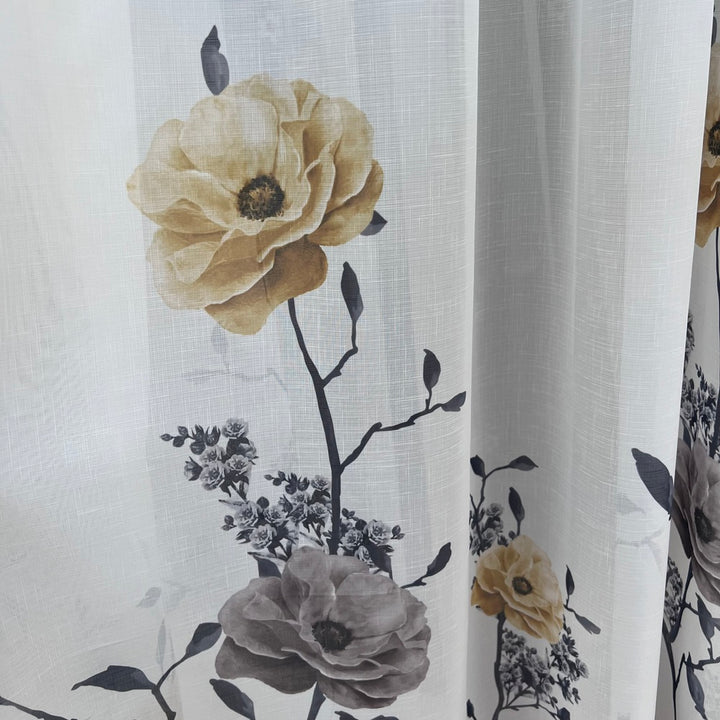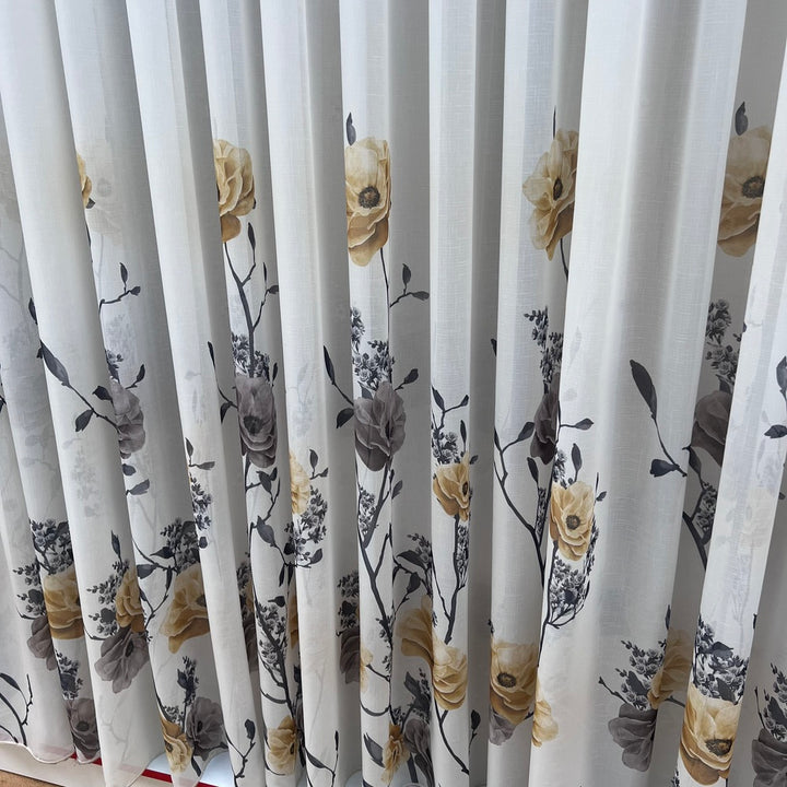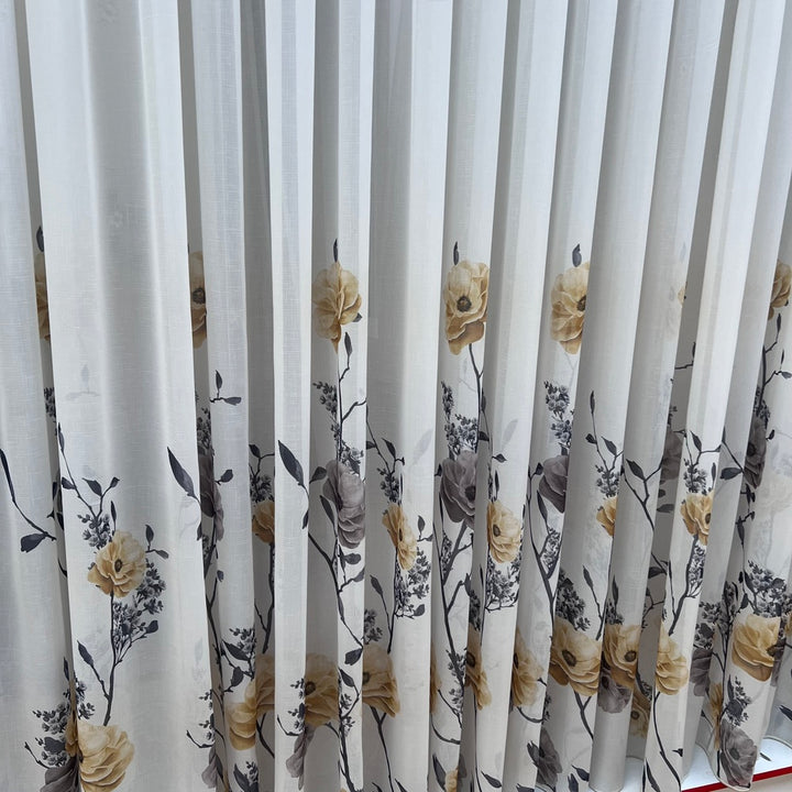 Gardine mit Beige/Grauem Blumenmuster – mit Kräuselband (1 Stück)