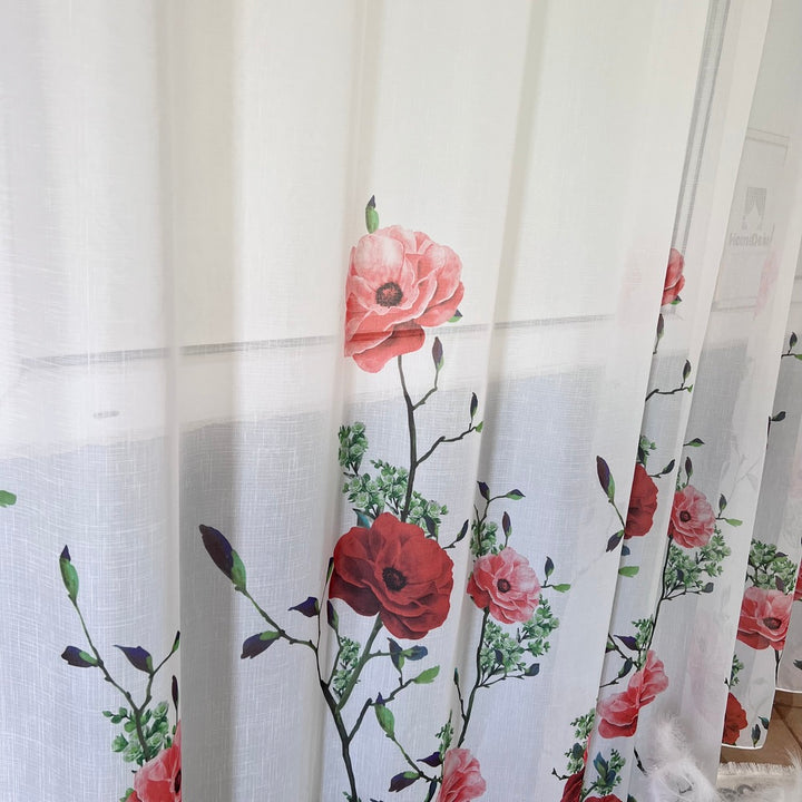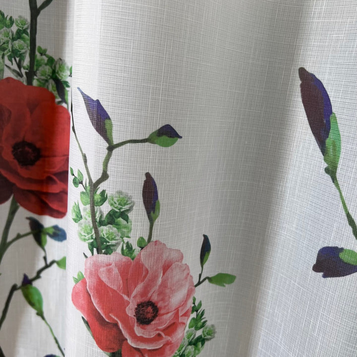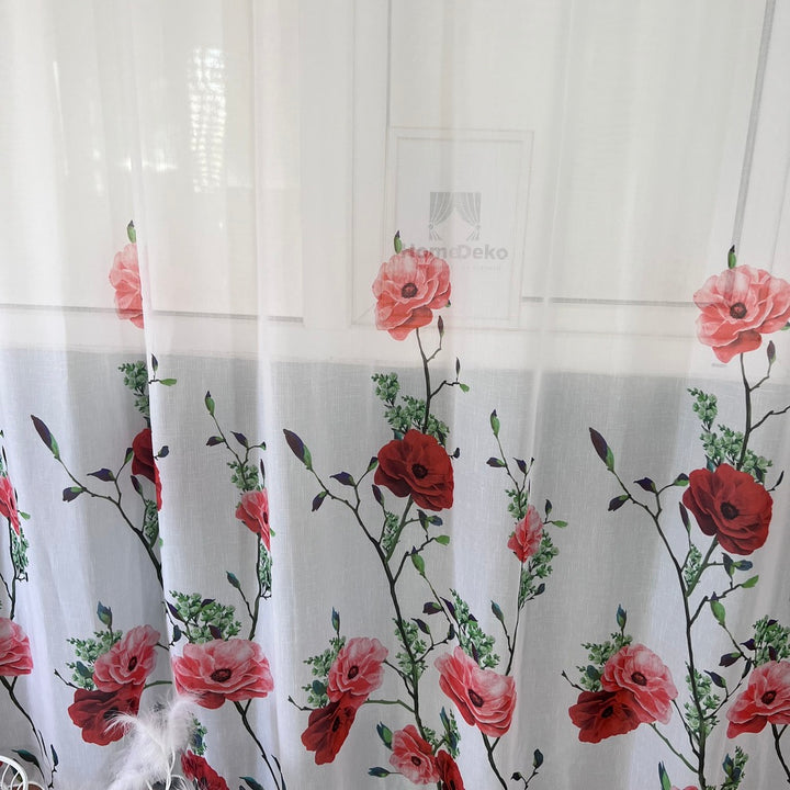 Gardine mit Rotemm Blumenmuster – mit Kräuselband (1 Stück)