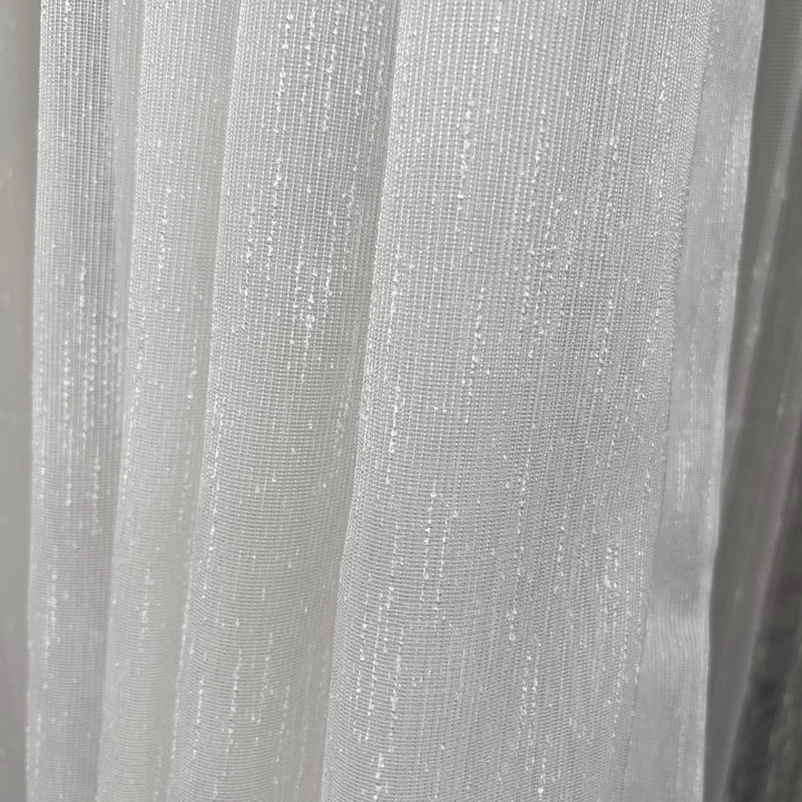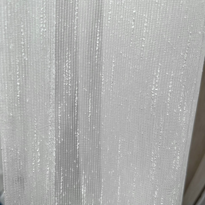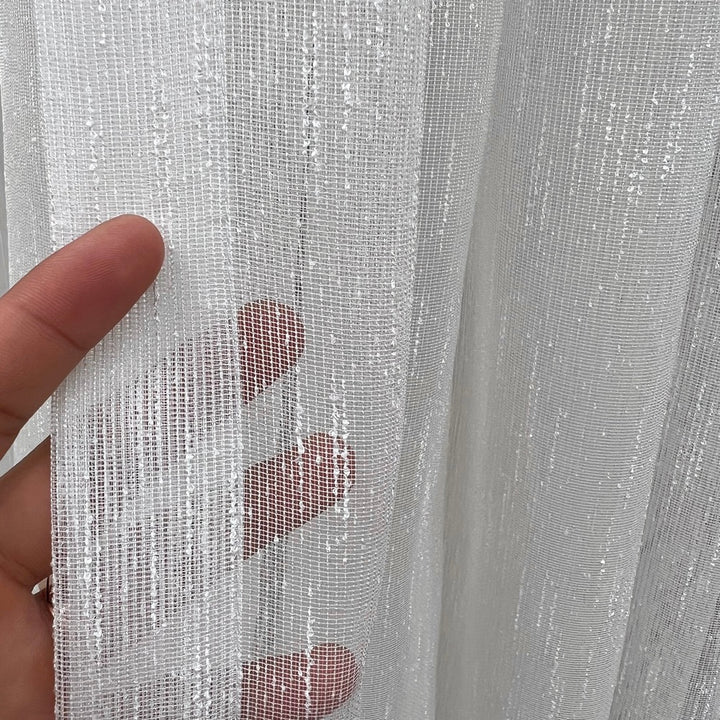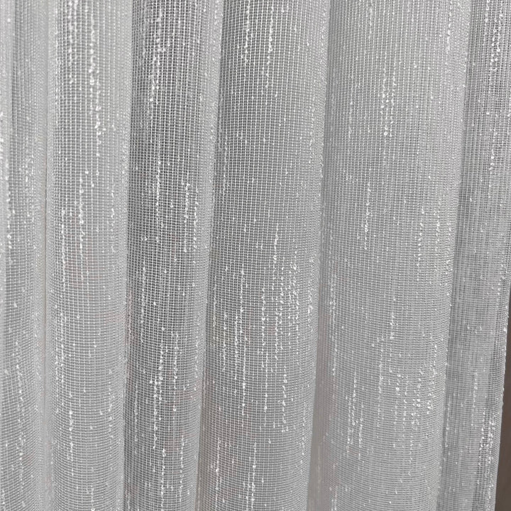 Das Netzgewebe ermöglicht es dem natürlichen Licht, in den Raum einzudringen, wodurch ein strahlender und einladender Effekt entsteht. Der Vorhang lässt den Raum höher wirken, besonders wenn er bodenlang gewählt wird.