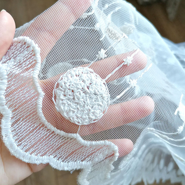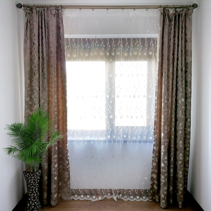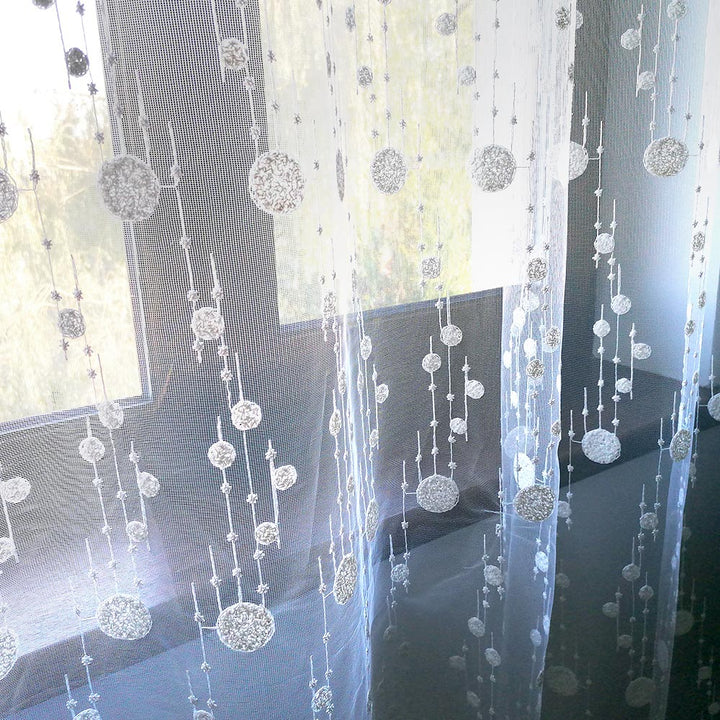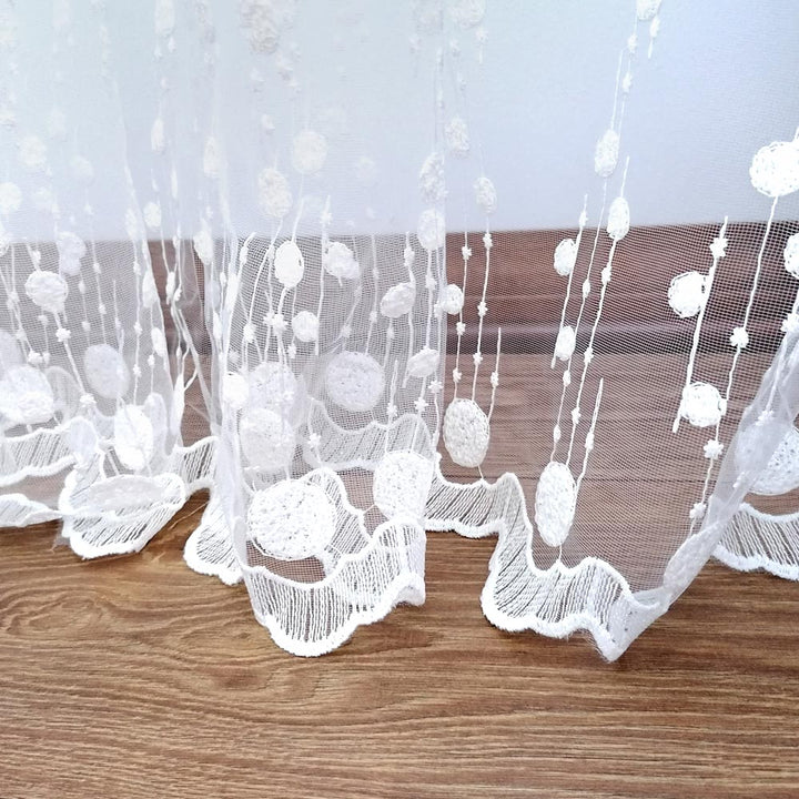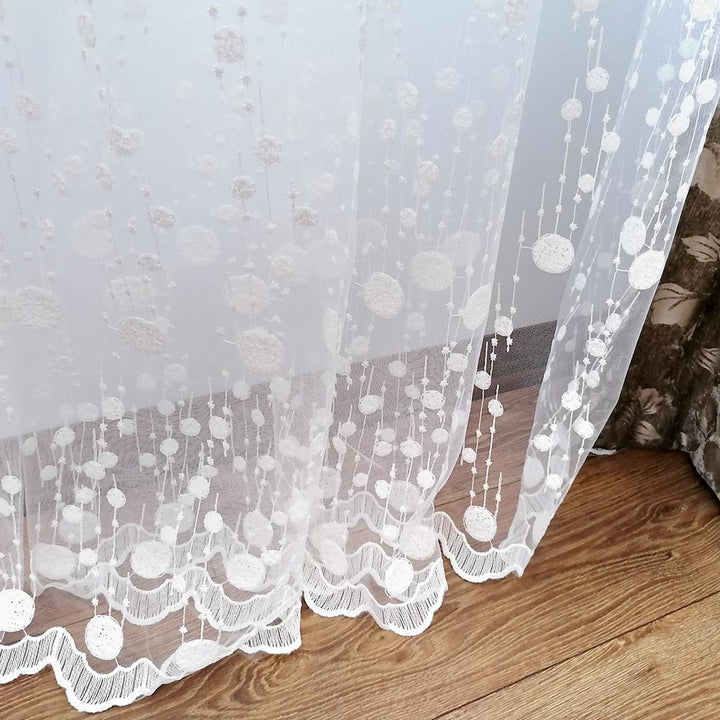 Gardinen mit Kleiner Kugelstickerei Elfenbein – mit Kräuselband (1 Stück)