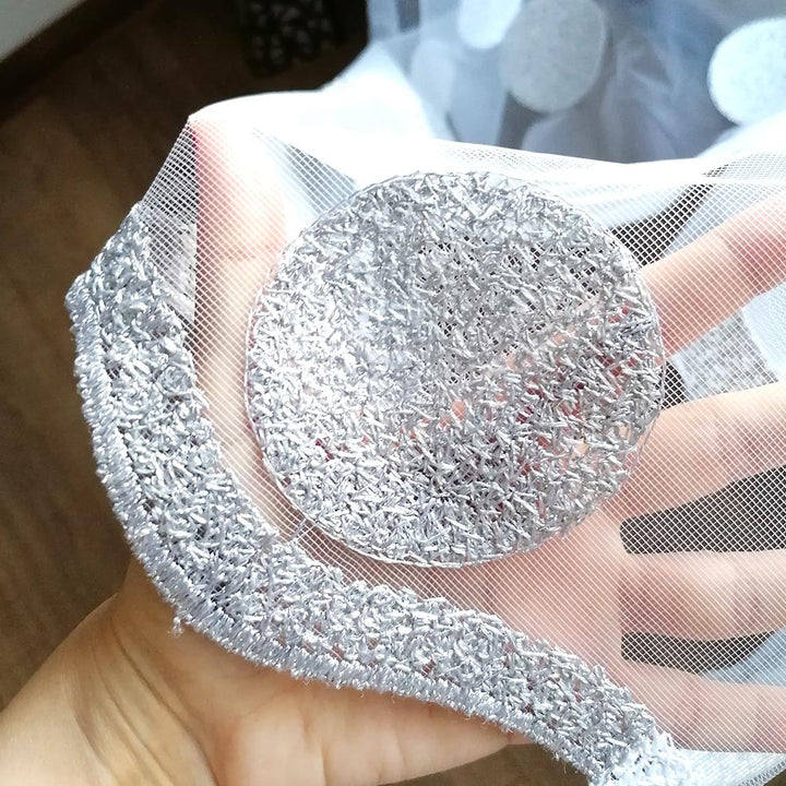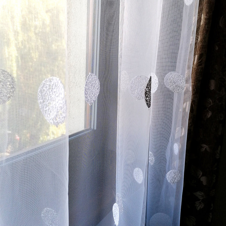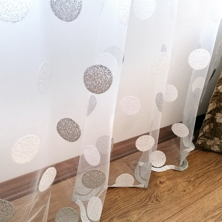 Gardinen mit Kugelstickerei Weiß/Grau – mit Kräuselband (1 Stück)