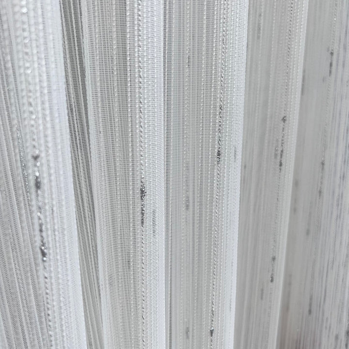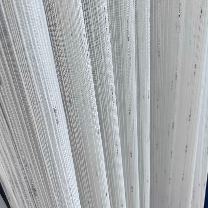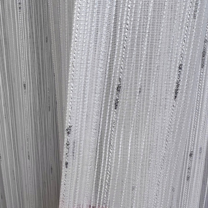 Gardinen mit Naturstoff Weiß mit Silbernen Pailletten – mit Kräuselband (1 Stück)