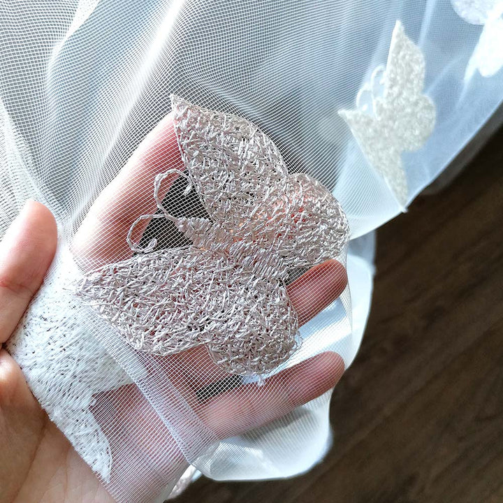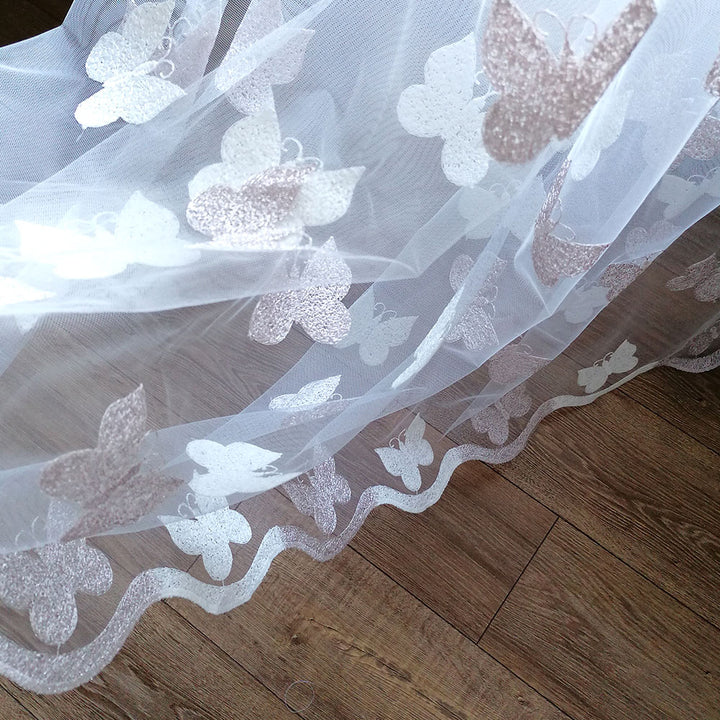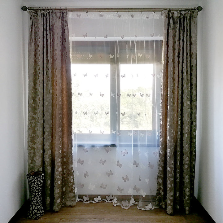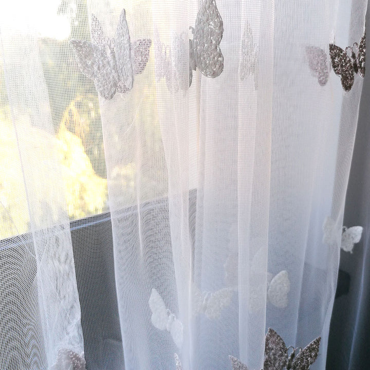 Gardinen mit Schmetterling Stickerei Elfenbein/Creme – mit Kräuselband (1 Stück)