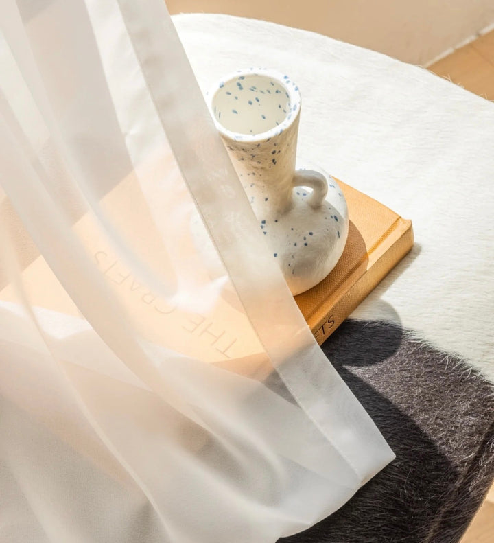 Seidiger Schleiervorhang Creme – mit Kräuselband (1 Stück)