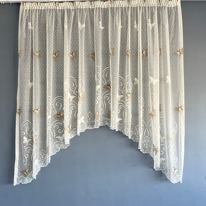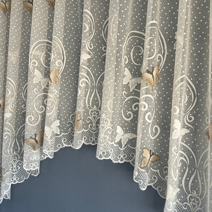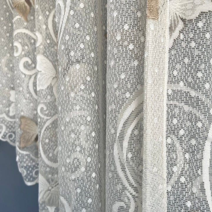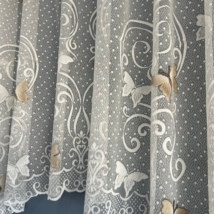 Küchenvorhang Schmetterlingsmuster Beige/elfenbeinweiß – mit Kräuselband (1 Stück)