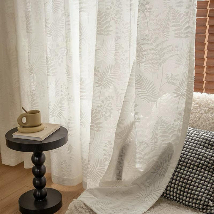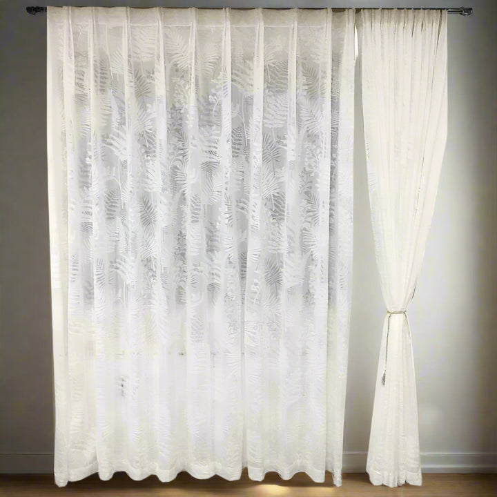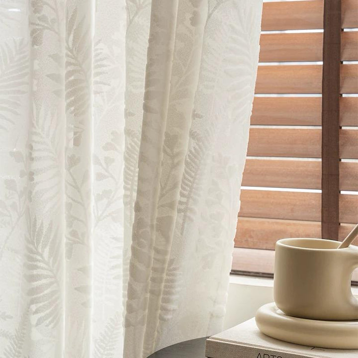Hochwertiger Vorhang mit 3D-Samtmuster Elfenbein – mit Kräuselband (1 Stück)