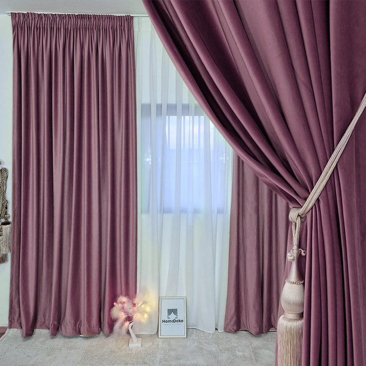 Hochwertiger Vorhang Samt 90% Verdunkelung Altrosa – mit Kräuselband (1 Stück)