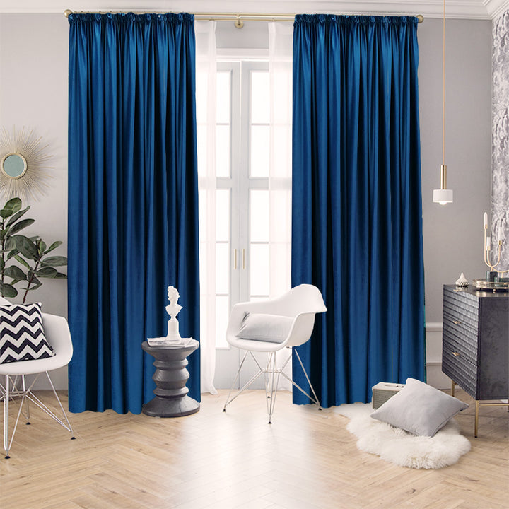 Hochwertiger Vorhang Samt 90% Verdunkelung Dunkelblau – mit Kräuselband (1 Stück)