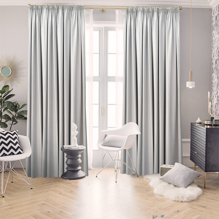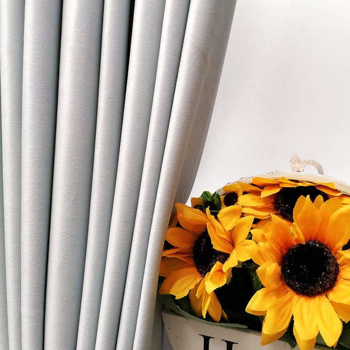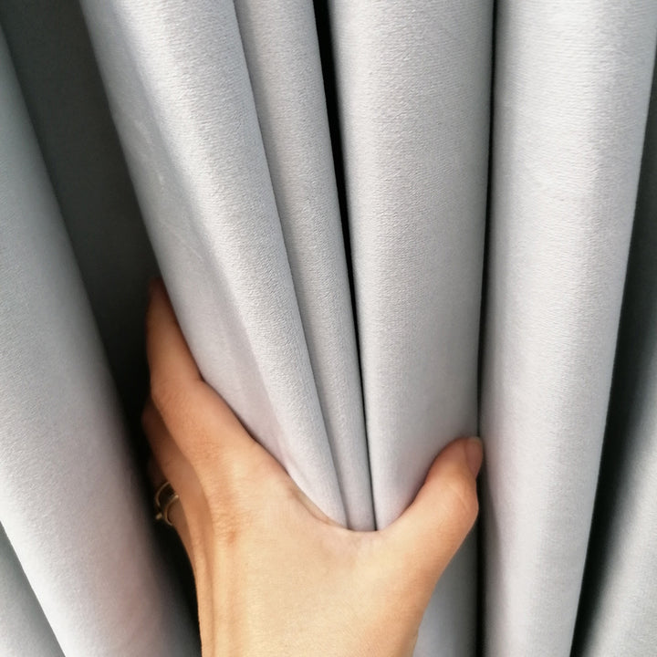 Hochwertiger Vorhang Samt 90% Verdunkelung Hellgrau – mit Kräuselband (1 Stück)