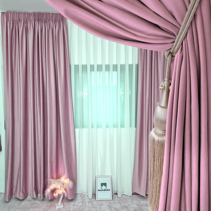 Hochwertiger Vorhang Samt 90% Verdunkelung Rosa – mit Kräuselband (1 Stück)