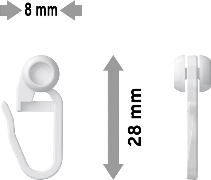 Innenlaufrollen mit Faltenlegehaken aus Kunststoff für Gardinenschienen (Packung mit 100 Stück)
