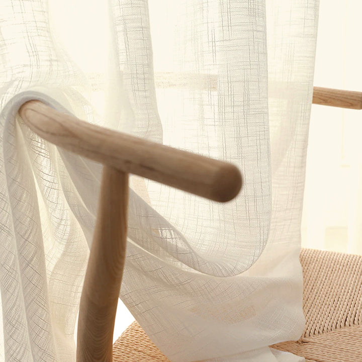 Das Netzgewebe ermöglicht es dem natürlichen Licht, in den Raum einzudringen, wodurch ein strahlender und einladender Effekt entsteht. Der Vorhang lässt den Raum höher wirken, besonders wenn er bodenlang gewählt wird.