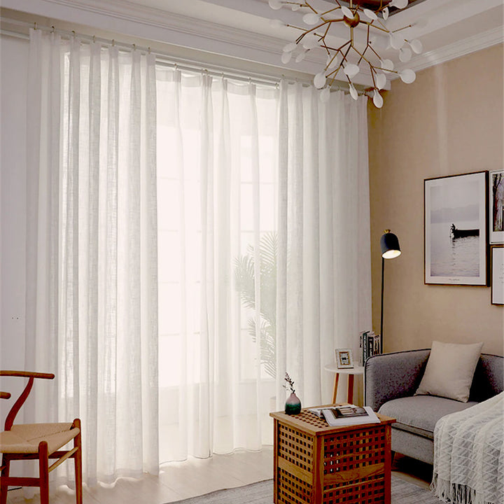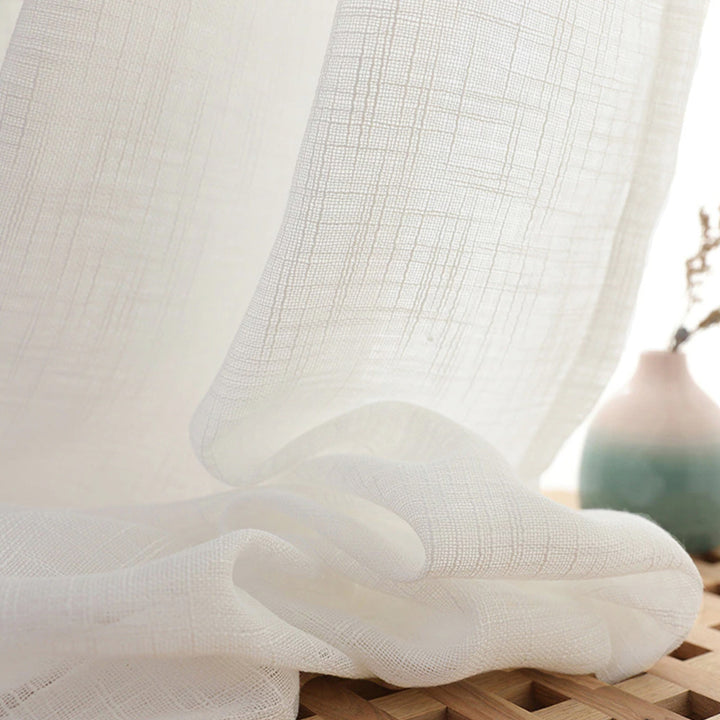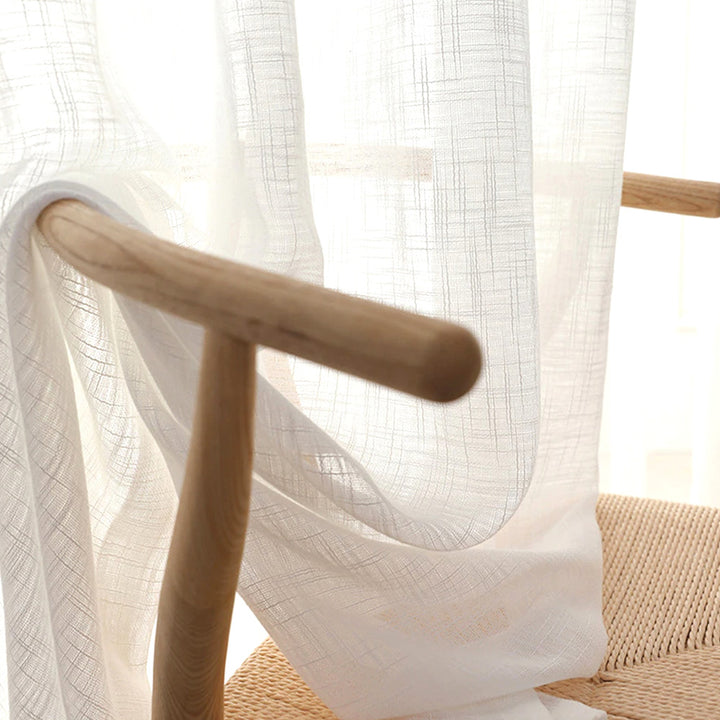 Das Netzgewebe ermöglicht es dem natürlichen Licht, in den Raum einzudringen, wodurch ein strahlender und einladender Effekt entsteht. Der Vorhang lässt den Raum höher wirken, besonders wenn er bodenlang gewählt wird.
