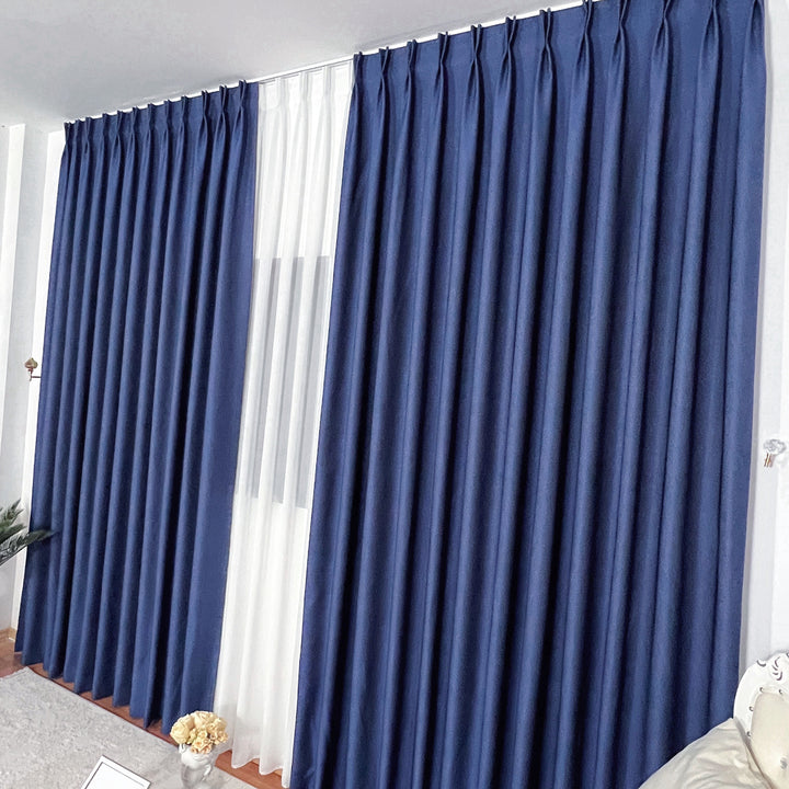 Luxuriöser Leinenvorhang 70% Verdunkelung Blau – mit Kräuselband (1 Stück)