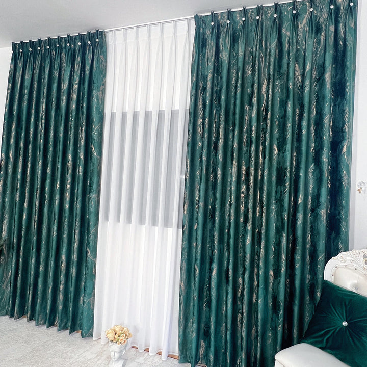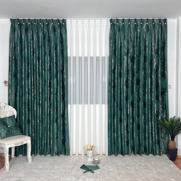Luxuriöser Samtvorhäng 80% Verdunkelung Dunkelgrün – mit Kräuselband (1 Stück)