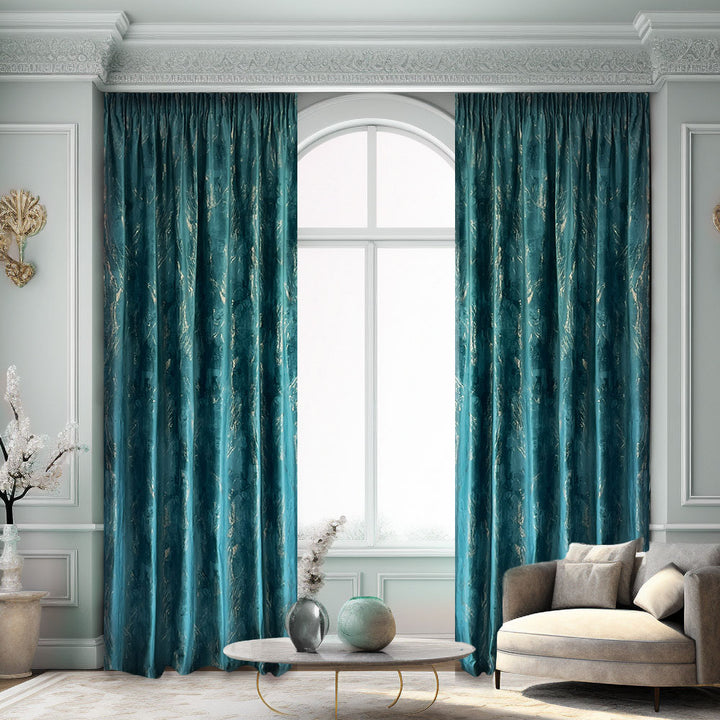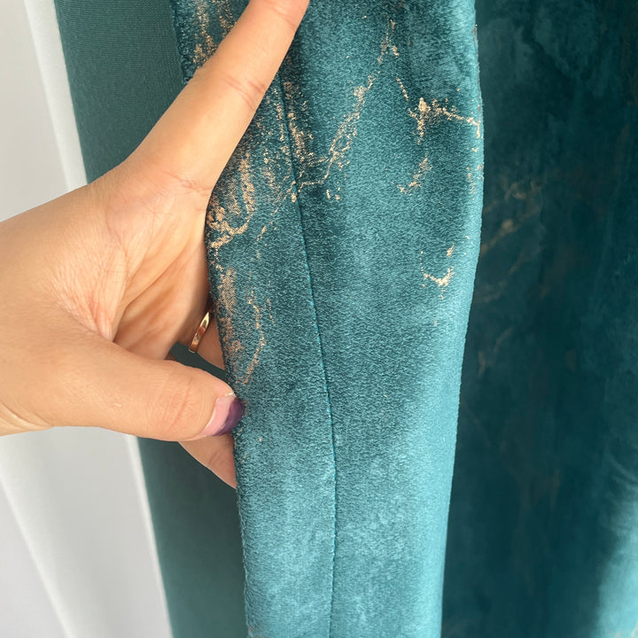 Luxuriöser Samtvorhäng 80% Verdunkelung Türkis – mit Kräuselband (1 Stück)