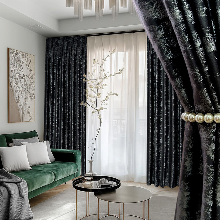 Die halbverdunkelnden Samtvorhänge mit fließender Textur sind angenehm weich, knitterfrei, blockieren das Sonnenlicht und bieten eine thermische Isolierung sowohl gegen Kälte im Winter als auch gegen Hitze im Sommer.