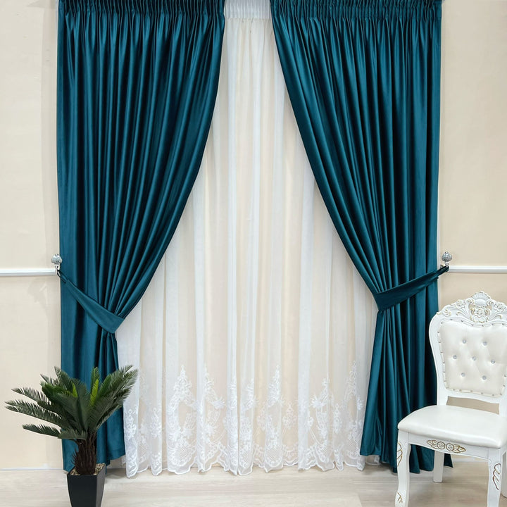 Samt Vorhang 70% halbdeckend Türkis – mit Kräuselband (1 Stück)