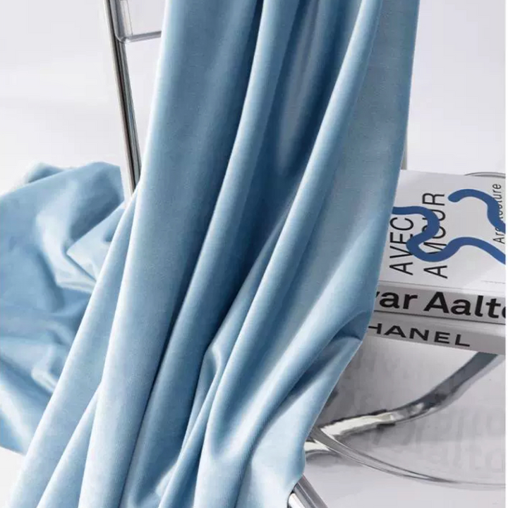 Samt Vorhang 70% halbdeckend Babyblau – mit Kräuselband (1 Stück)