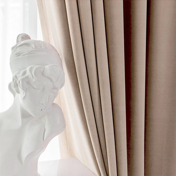 Die halbverdunkelnden Samtvorhänge mit fließender Textur sind angenehm weich, knitterfrei, blockieren das Sonnenlicht und bieten eine thermische Isolierung sowohl gegen Kälte im Winter als auch gegen Hitze im Sommer.