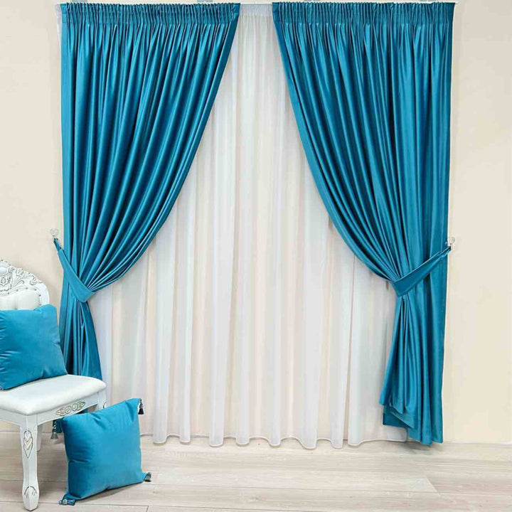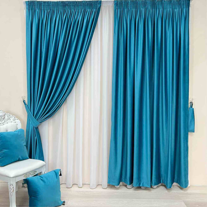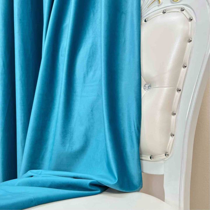 Samt Vorhang 70% halbdeckend Blau – mit Kräuselband (1 Stück)
