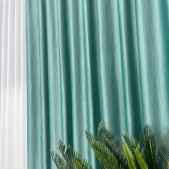 Samt Vorhang 70% halbdeckend Mintgrün – mit Kräuselband (1 Stück)