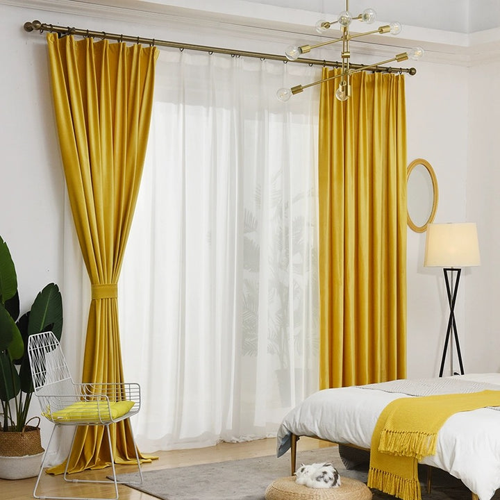 Die halbverdunkelnden Samtvorhänge mit fließender Textur sind angenehm weich, knitterfrei, blockieren das Sonnenlicht und bieten eine thermische Isolierung sowohl gegen Kälte im Winter als auch gegen Hitze im Sommer.