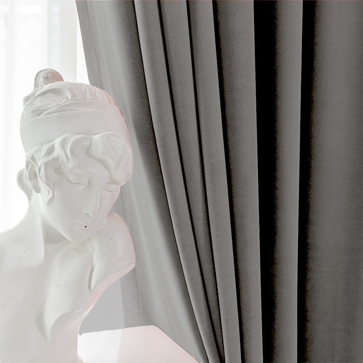 Die halbverdunkelnden Samtvorhänge mit fließender Textur sind angenehm weich, knitterfrei, blockieren das Sonnenlicht und bieten eine thermische Isolierung sowohl gegen Kälte im Winter als auch gegen Hitze im Sommer.